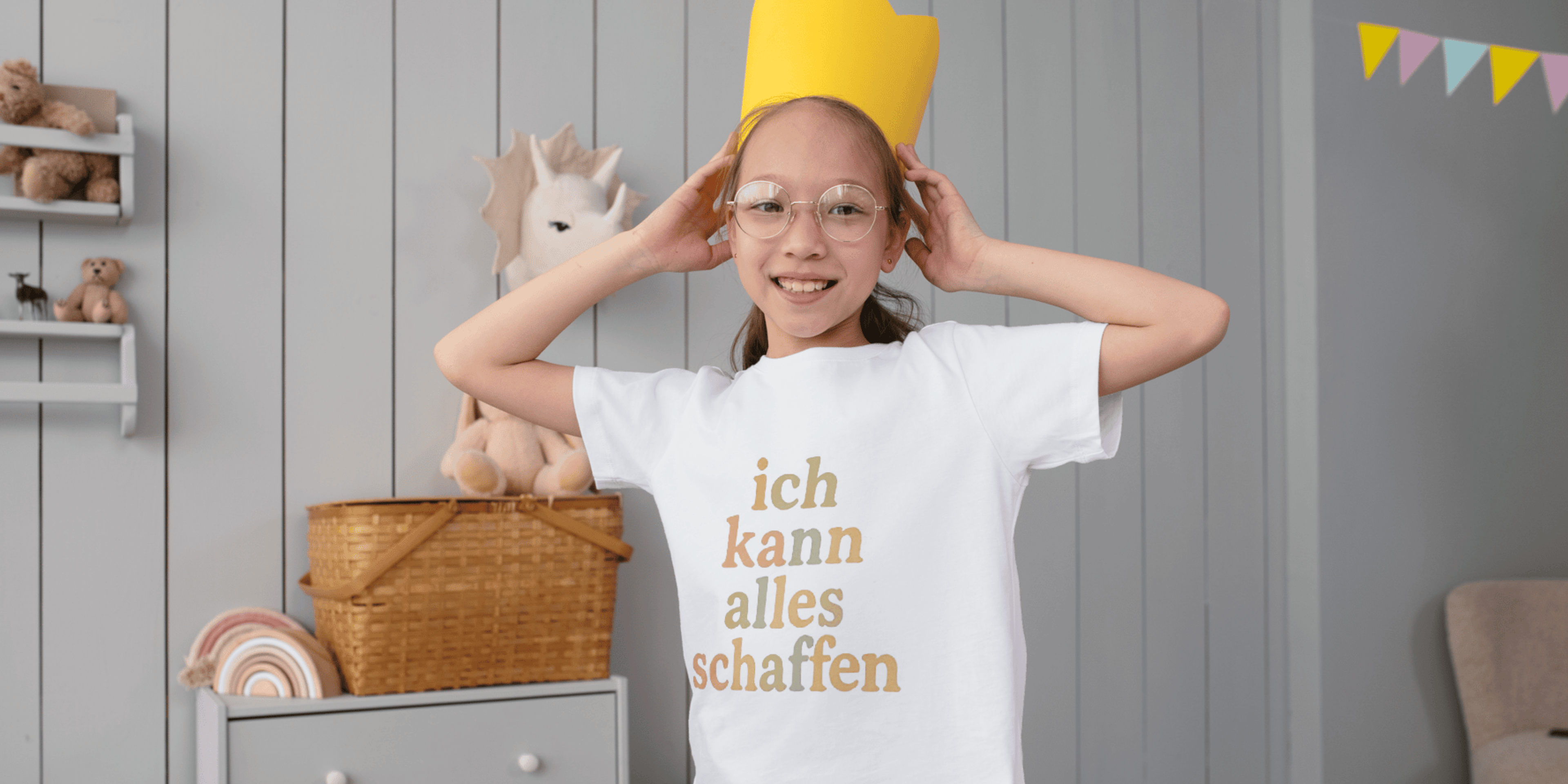 Unsere Kleidung transportiert mehr als nur Style – sie trägt Botschaften, die Kinder stärken. Jede Affirmation schenkt Liebe, Mut und Geborgenheit.